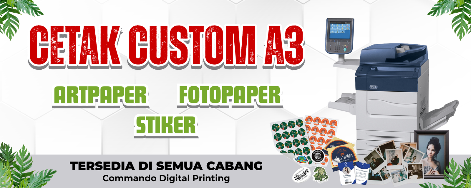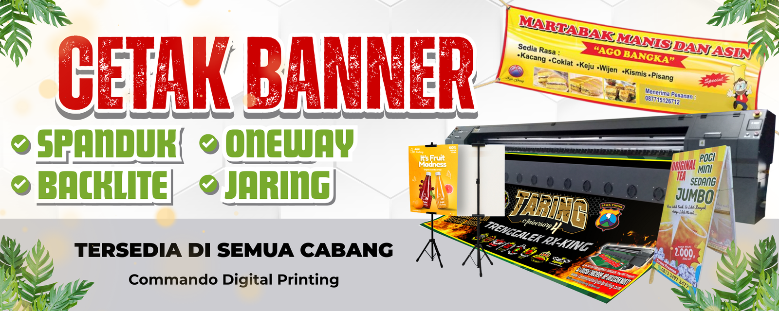 Cabang Kami Commando Digital Printing Cabang Ngemplak - Tulungagung Jl. Fatahilah, Botoran, Kec. Tulungagung, Kabupaten Tulungagung, Jawa Timur 66213 Commando 2 Digital Printing Cabang Bolorejo - Tulungagung Jl. Argopuro, RT.33/RW.06, Morangan, Bolorejo, Kec. Kauman, Kabupaten Tulungagung, Jawa Timur 66261 Commando Digital Printing Cabang Trenggalek Jl. KH Hasyim Asyari, Krajan, Surodakan, Kec. Trenggalek, Kabupaten Trenggalek, Jawa Timur Commando Digital Printing Cabang Malang Jl. Danau Jonge H7D-30, Madyopuro, Kec. Kedungkandang, Kota Malang, Jawa Timur 65139 Contoh Layanan Pelayanan Kami yang mungkin Anda Sukai Cetak Banner Custom – Cepat, Murah & Berkualitas (Indoor & Outdoor) Cetak One Way Sticker Custom – Stiker Kaca Mobil & Kantor Berkualitas Cetak Foto dan Pigura Custom – Berbagai Ukuran (8R hingga 20R) Cetak Buku Menu Custom – Bahan Art Paper Premium & Laminating Cetak Foto Polaroid Custom Murah – Bahan Art Paper Tebal & Glossy (Isi 25 pcs) Cetak Kartu Nama Custom Premium – Bahan Art Paper Glossy & Tebal (1 Box 100 Pcs) Cetak Buku Yasin Custom Softcover – Desain Eksklusif & Kualitas Terjamin Cetak Stiker Hologram Custom – Label Segel & Merchandise Efek Pelangi Cetak DTF Kaos Custom – Kualitas Warna Akurat (CMYKRGBO) & Tahan Lama Cetak Stiker DTF UV Custom – Label Souvenir, Mug & Kaca Tanpa Background Cetak Booklet & Katalog Produk Custom – Bahan Art Paper Premium Berkualitas Dinilai 5.00 dari 5 Cetak Sertifikat & Piagam Bahan Linen Custom – Ukuran A3 & A4 Kalender PVC Card Cetak Stiker A3+ Stiker Indoor Meteran Standing X-Banner Standing Roll Up Banner Cloth Banner (Kain) Mini X Banner Stiker Event Desk Standing Banner Segitiga Papan Ucapan Foto Bingkai Kayu Banner Bolak Balik Papan Ucapan Mini
