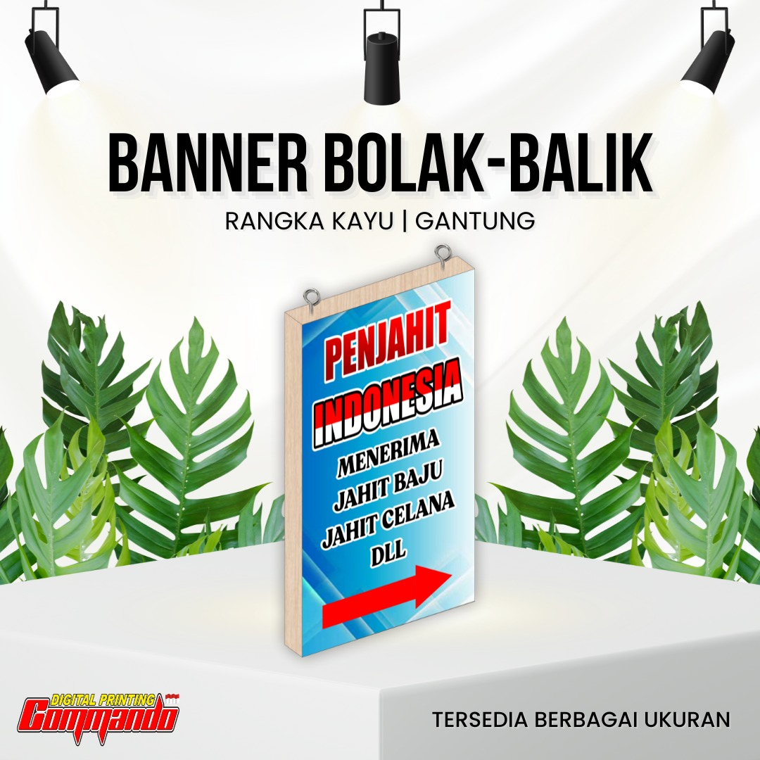 Kami melayani pembuatan Papan Banner Kayu Bolak-Balik, dengan berbagai ukuran